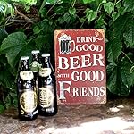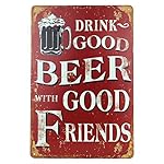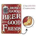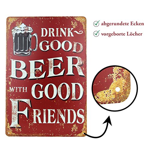 ✔ Sprüche Schilder aus Blech „Drink Beer with good Friends“. Metallbild Bier Deko Männer bedruckt weiß, rot. Western Bar Schild wie Geschenke aus USA