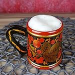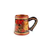 Traditionelle russische Khokhloma-Bier-Tasse, Vintage Entwurfs-Tasse mit einem Griff gemalt mit hohloma.